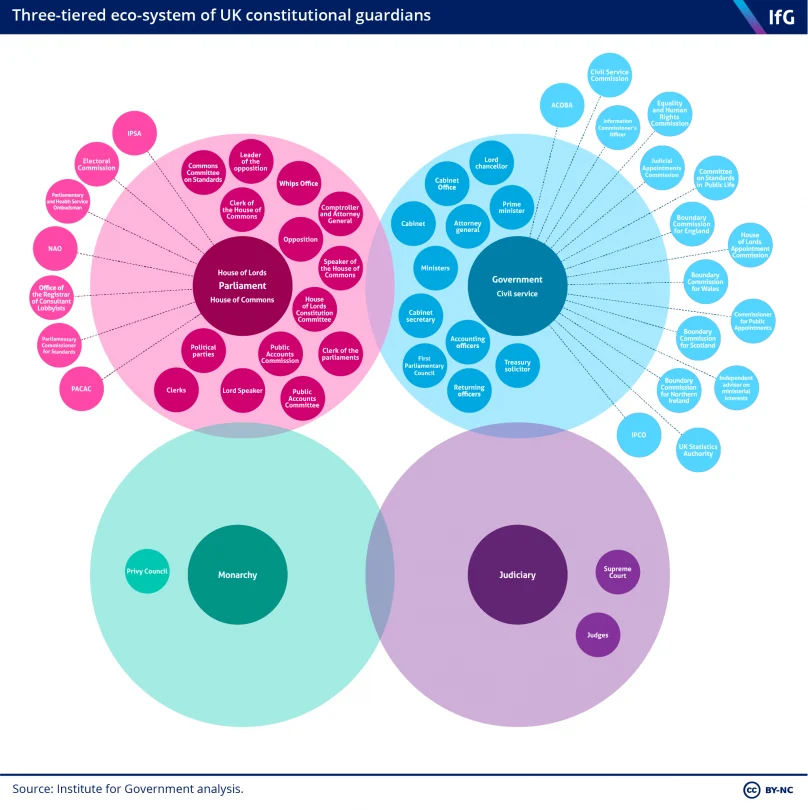 This ecosystem works together to maintain balance in the functioning of the UK constitution. But it is fragile, and it is under increasing pressure. To avoid the risk of damaging public trust in the governance of the UK and its core democratic principles, ministers need to do more to strengthen and protect this vital eco-system.