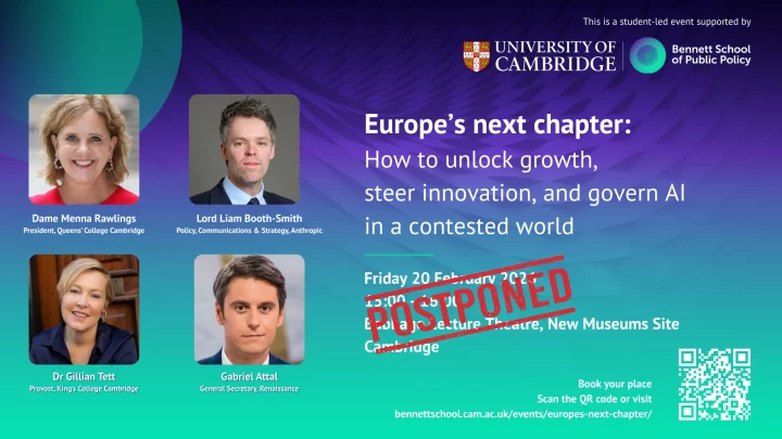 Past Event 20/02/2026 Europe’s next chapter: how to unlock growth, steer innovation, and govern AI in a contested world Find out more